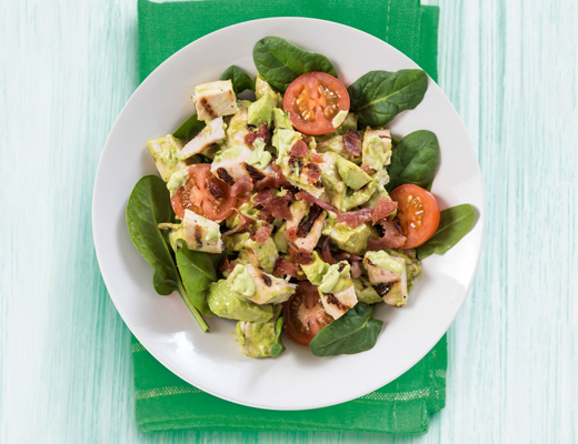 - In a large mixing bowl, combine chicken, bacon, avocado, tomatoes, mayonnaise, and pesto.